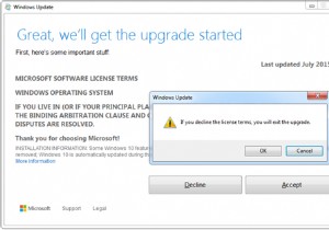불법 복제된 Windows가 있고 Windows 10으로 업그레이드하면 컴퓨터 화면에 워터마크가 표시됩니다. ... 즉, Windows 10 복사본이 불법 복제 컴퓨터에서 계속 작동합니다. Microsoft는 귀하가 정품이 아닌 사본을 실행하고 업그레이드에 대해 지속적으로 잔소리하기를 원합니다.